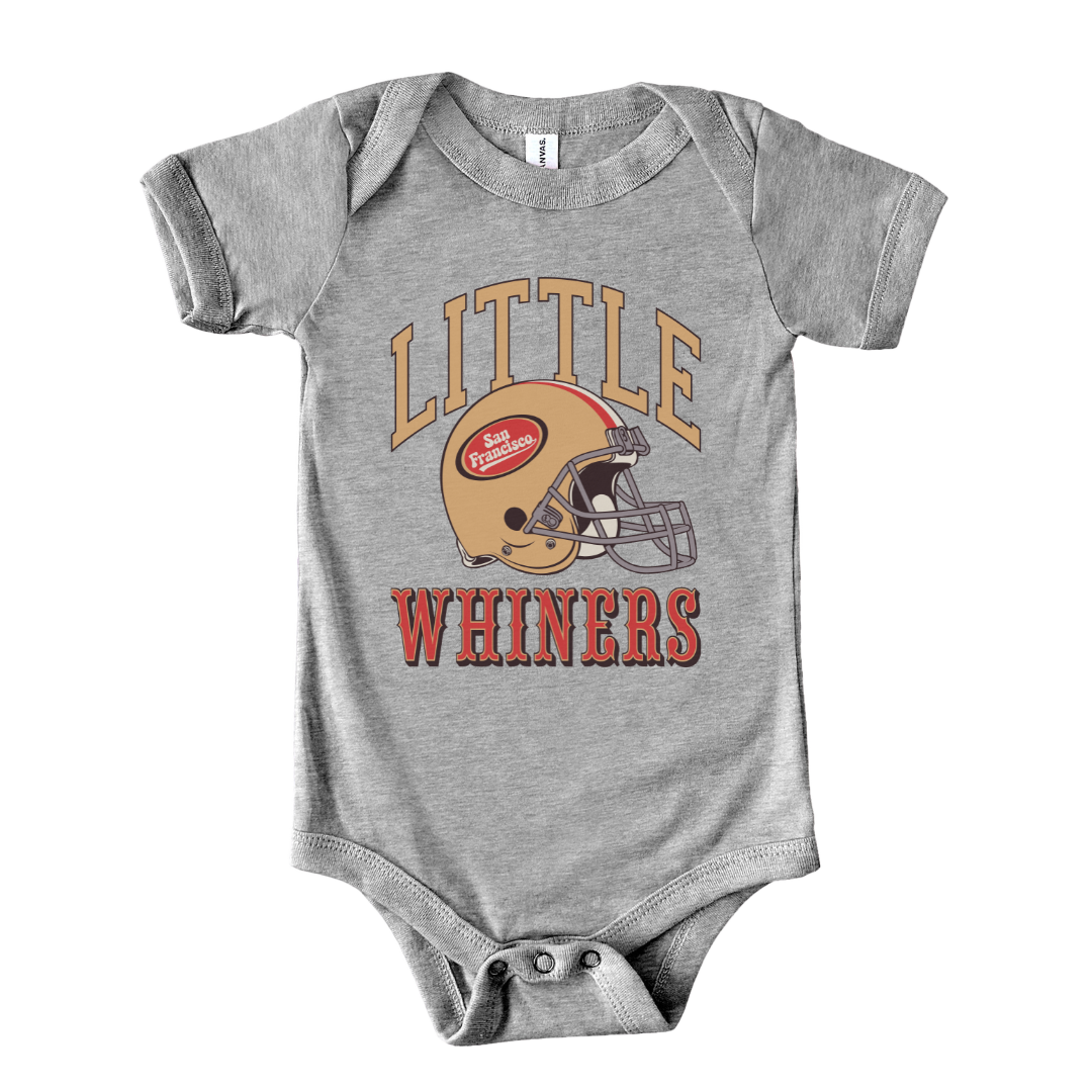 Your little one may be small, but they've got the heart of a true fan—mixed with just a hint of whine! Our "San Francisco Little Whiners" onesie is a touchdown when it comes to combining cute and clever. Perfect for the tiniest San Francisco football team supporters, this playful onesie is crafted from soft, breathable cotton to keep your baby comfortable while they cheer (or cry) through every game. Whether they're calling for their next bottle or protesting naptime, this onesie will let everyone know they're part of the San Francisco fan club. Go Little Whiners!