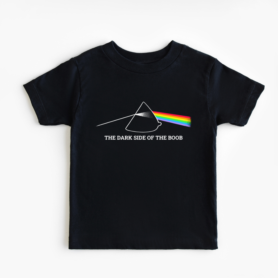 Every breastfeeding baby's favorite album is "The Dark Side of the Boob". Parents who rock out to Pink Floyd will love dressing their babies in this cotton tee with a subtle image of a funny breastfeeding pun.