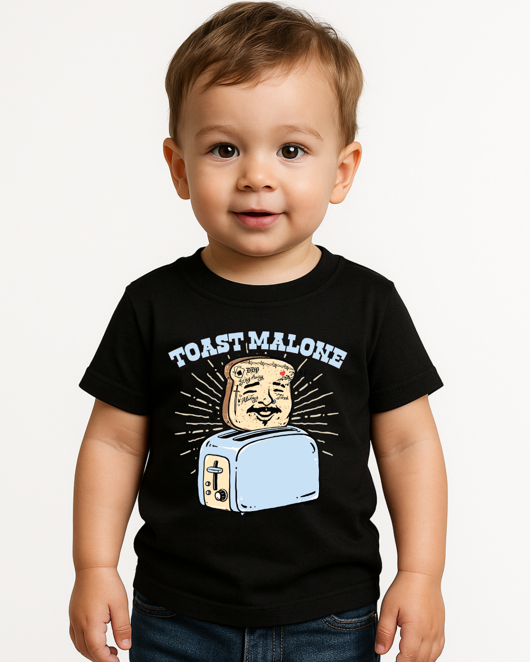 Turn breakfast time into a vibe with this TOAST MALONE kids t-shirt! Featuring a hilarious cartoon suspiciously similar to chart-topping rapper and country singer, Post Malone, this shirt is perfect for little Posty fans (and their parents too, of course). Soft, comfy, and full of flavor, it’s a hit at playdates, preschool, and brunch alike.